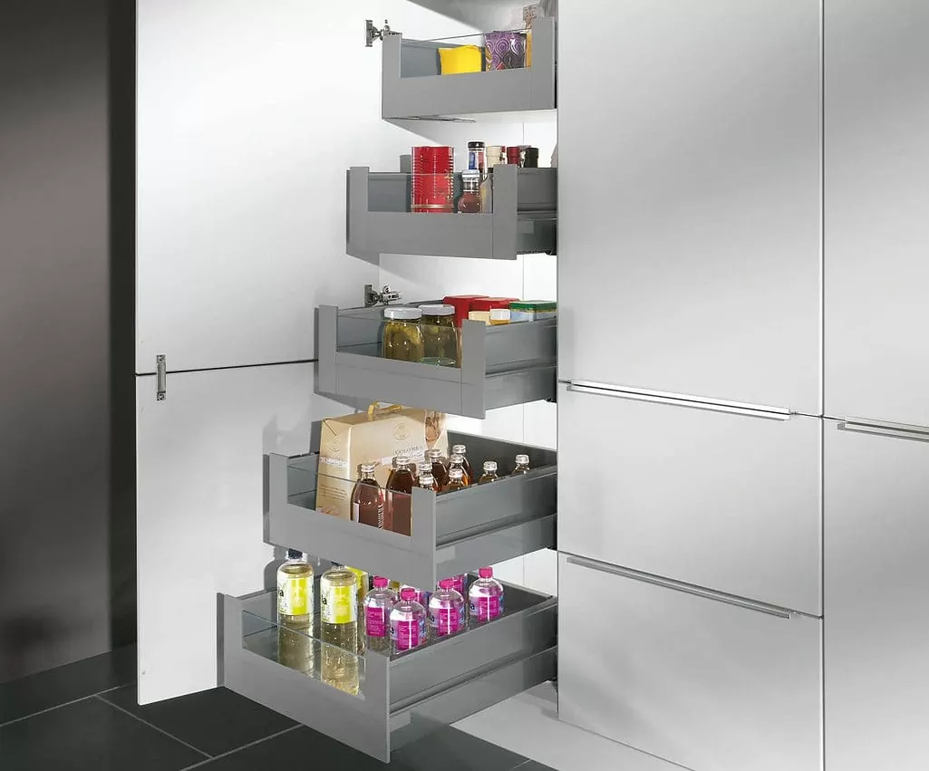 A kitchen larder unit, also known as a pantry unit, is a cabinet designed for storing food, kitchen supplies, and other essentials. These units typically feature multiple shelves, drawers, and compartments to organise items efficiently. Larder units can include various storage options such as pull-out shelves, wire baskets, and door racks, making it easy to access and organise dry foods, canned goods, spices, and more. They help maximise storage space, keep the kitchen clutter-free, and ensure that all your kitchen essentials are easily accessible and well-organised.