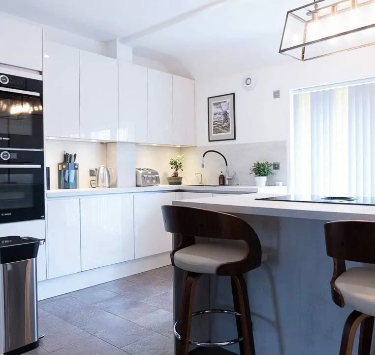 White, Modern, Handleless Kitchen with Island